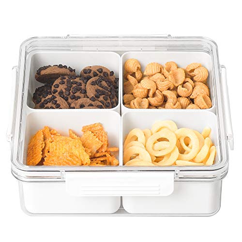 Plastic Divided Serving Tray with Lids for Snacks, Crudités