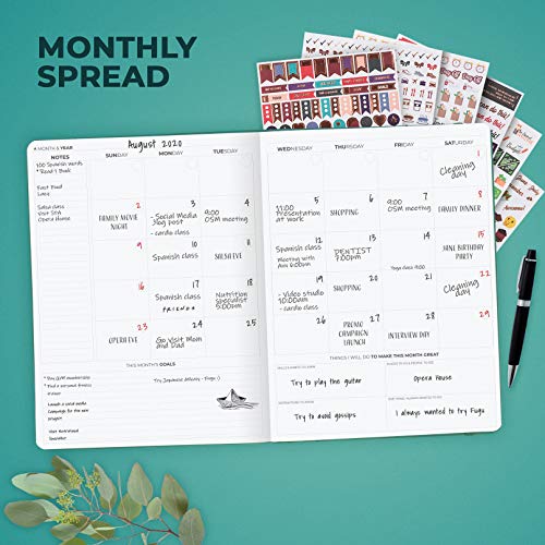 - ✓ AN ORIGINAL GIFT - This time management planner's design will not leave you indifferent - the golden logo, the soft-touch leatherette hardcover, 3 colorful ribbons, and a magnetic keepsake box will make it a fantastic and unique gift. This pro planner is complimented with 6 sheets of colorful planner stickers, thick 120gsm pearl white paper, an elastic band, and a pen holder. To make sure you get the most of your planner, it comes with a detailed step-by-step quick start illustrated guide!