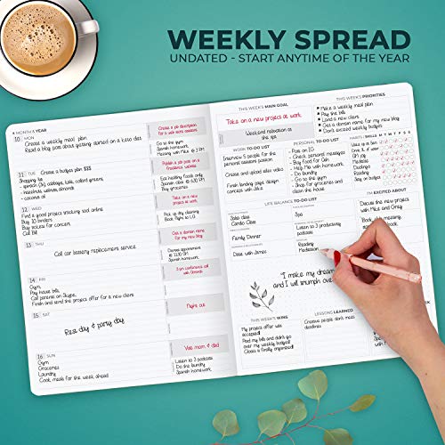 - ✓ UNDATED & MOTIVATING LAYOUTS - this professional planner comes undated, meaning that, unlike most dated planners, you can start using it any time of the year without wasting a page. That's why all 12 months run in bulk and are separated from 54 weekly spreads. Use 3 bookmarks to navigate between planner sections easily. The gratitude planner's layouts are light and spacious, making them pleasant to the eye and perfect even for larger handwriting.