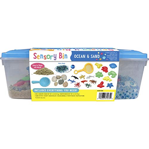 - OCEAN ADVENTURE - Dive into an ocean and sand adventure with a self-contained beach environment filled with fascinating water beads, 2 lbs of easy to mold play sand, ocean toys and more! This self-contained play bin is the ultimate sensory experience