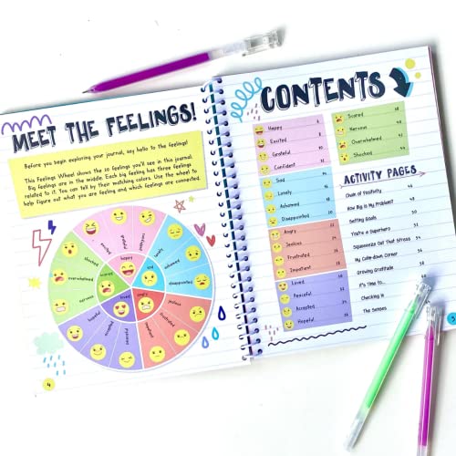 - KIDS BOOK ABOUT EMOTIONS: This child friendly journal includes a feelings wheel that introduces 20 common feelings that range from comfortable to uncomfortable and cover everything in-between.