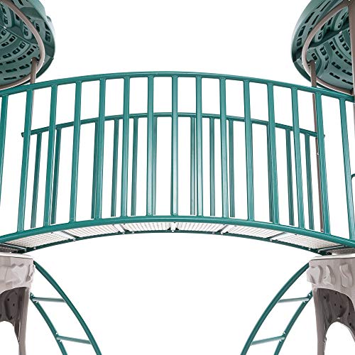 Details: Lifetime’s Adventure Tower with Two Towers brings a realm of princesses, knights, castles, and dragons right to your backyard. Storming the castle has never been so much fun. This swing set comes packed to the brim with features that will keep big groups of kids excited and entertained for hours on end. The two castle towers can each represent a different kingdom. The towers are connected by a bridge where kids can practice diplomacy and war. With two slides, two swings, and monkey bars, children will enjoy exploring new lands as they create their own adventures. Whether kids are dressing up or playing pretend, the Lifetime Adventure Tower with Two Towers is sure to be the main attraction for birthday parties and family gatherings. Features 5 ft. tall decking with hard top tower roof, doorways clubhouse (4), storefronts (2), rock climbing walls (4), 9 ft. wavy slide (2), steering wheel (1), trapeze (1), arched climber (2), car map (2), swings (2), a bridge, and an anchor kit. This model comes in earthtones (green, brown, tan). 5-year limited warranty.