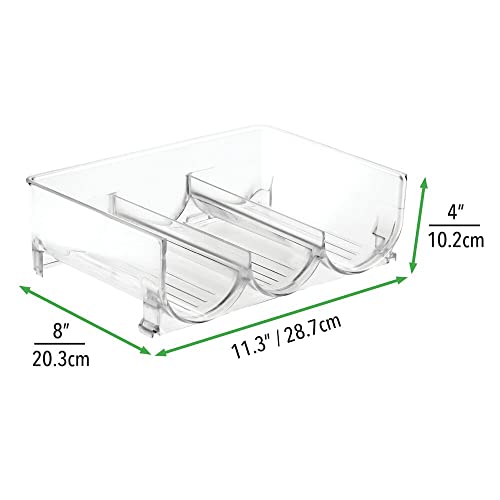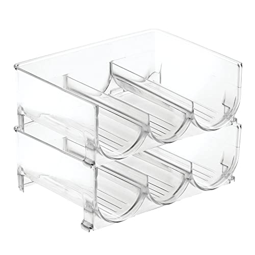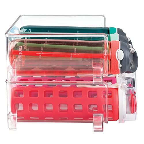Details: The mDesign Stackable Water Bottle Holder creates organized kitchen cabinets, refrigerators, pantries and garage shelves. These durable organizers keep sports bottles in place and ready for use. Stack multiples to create a custom, vertical storage unit, or use them in different areas of the home. Curved compartments keep each bottle separate and organized, while the open tops make it easy to grab a bottle right when you need it.