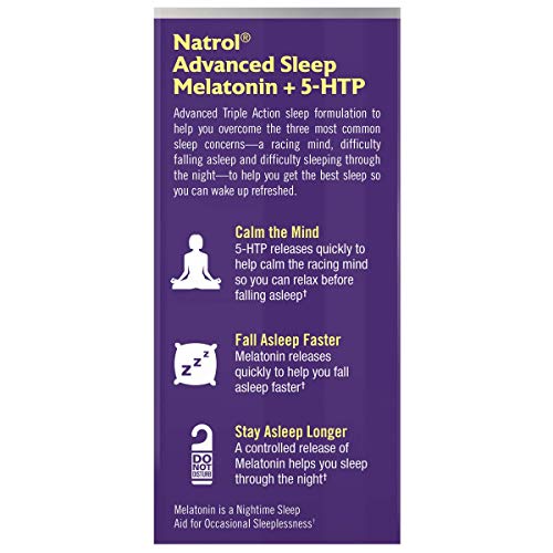 - Calm and Relax Your Mind: Natrol Advanced Sleep Melatonin + 5-HTP is scientifically formulated bi-layer tablet designed to reduce common sleep issues including a racing mind, difficulty falling asleep and problems sleeping through the night