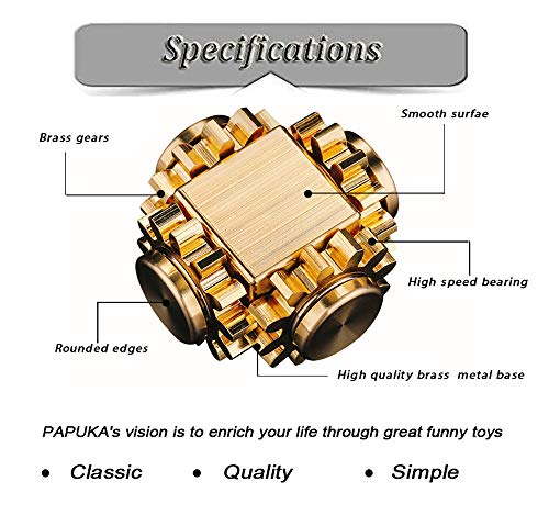 Details: Afford Yourself This Exquisite Fidget Spinner Toy By PAPUKA And Relieve Your Stress And Anxiety - Starting Today! Do you often find yourself being overstressed or worrying about almost everything? Are you in the market for a simple solution that could help you with your anxiety? If yes, then PAPUKA has just the thing for you; it’s called a sensory Fidget Spinner toy! High Quality Sensory Integration Spinning Toy For Kids & Adults Made of Pure Brass, our sensory processing toy is ideal to help you or your child to relax, let go off stressing thoughts and relieve anxiety. In addition to that, sensorial toys like our Spinner are also suitable to help people trying to quit a variety of stress-related bad habits such as drinking, smoking or nail biting. ★ Features: √Special Fidget Cube: Gears Linkage Design, made of pure brass, high quality, full of mechanical sense. √ Easy to carry, simple, discrete and fun, also effective for focus and deep thought. √ Compact design and smooth feeling,will be great in your hand √ Help kids develop their brain,logic thinking and creating ability √ Help adults release their pressure to relax √ Fidget breaker while studying or working, it helps relieve stress, anxiety and kill time