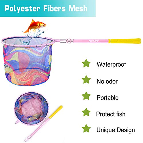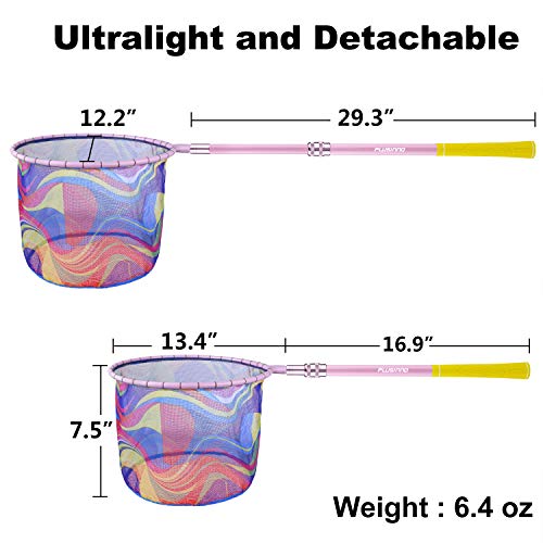 Details: ENJOY FISHING PLUSINNO professional fishing net is the best choice for kids fishing outdoor. Designed specifically for kids exploring the nature world and developing their hands-on skills Features: ✔Rainbow color fishing net will increase your kids' interest in nature ✔Professinal Net makes the fishing net lightweight,sturdy and ensures the kids carry it with ease. The special designed structure has the advantage of convenience in carrying and transportation. It would be a great and unique gifts for Birthday, Christmas, Thanksgiving Day. Specification: Extend Length: 40.3" Collapsed Length: 28.4" Hoop Size: 11"x11.4" Net Depth: 9" Weight: 6 Oz