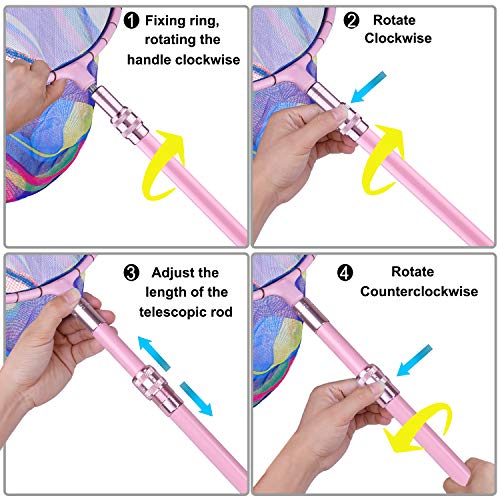 - Net Dimensions: Net opening 11.4 inch (L) x 11 inch (W), net depth 9 inches. Full length can be extended from 28.4 inches to 40.3 inches as you can adjust the pole handle to meet the kid's need.