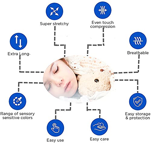 - The sensory bed sheet provides more gentle and comfortable pressure and deep pressure treatment with specific blanket. The high elastic fabric can let children roll freely without binding feeling, and effectively prevent children from rolling down from the bed to the ground in deep sleep.