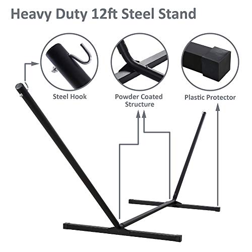 - Freestanding Hammock with Portable Stand: No damage to trees. Created to be stable and long-lasting, the 12 ft stand is made from powder-coated heavy gauge steel. It can be easily assembled in minutes without any tools, and it could be disassembled easily, making it to be a portable hammock. Feel free to contact us if you have any questions during use within one year of purchase. We bfoyo are always here to help.