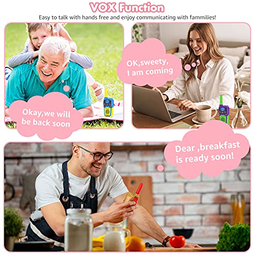 - đăEasy to Useă: Portable and lightweight body allow kids to easy use. Simple push-to-talk operation and hands-free communication(voice activationďźVOXďźtalking )to relax kids' hands, send your voice without pressing any button. The lock Keypad function keeps kids from pressing keys randomly, to enhance the fun of parent-child interaction. It is helpful in outside adventures, hiking, camping, riding and other different activities