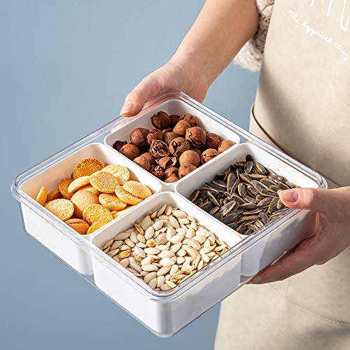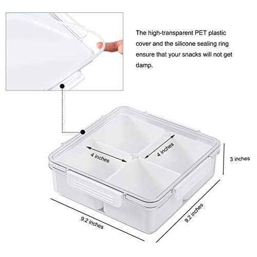 - The snack tray has a transparent airtight lid and case, it can be used as a large food storage container. size: 9.2*9.2*3(Length*Width*Height, inches)