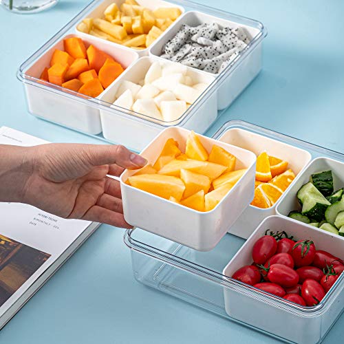 Plastic Divided Serving Tray with Lids for Snacks, Crudités